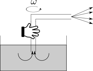 Dušan zistil, že aj obyčajná hadica sa dá použiť ako vodné čerpadlo. Ponorte jeden koniec do väčšej nádoby s vodou a začnite krútiť druhým koncom vo vzduchu, akoby ste mali laso. Budete pozorovať, že voda v hadici začne stúpať, prípadne až vystrekovať. Zmerajte závislosť výšky výstupu vody od obvodovej rýchlosti konca hadice. Prečo vlastne voda začala stúpať?