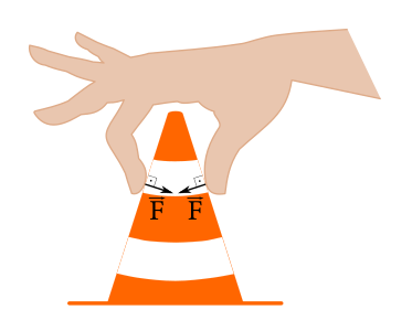 Patrik našiel niekde v okolí Ivachnovej cestársky kužeľ s hmotnosťou $m$ a vrcholovým uhlom $2\alpha$. I veru chytil ho dvomi prstami, pekne jeden oproti druhému.